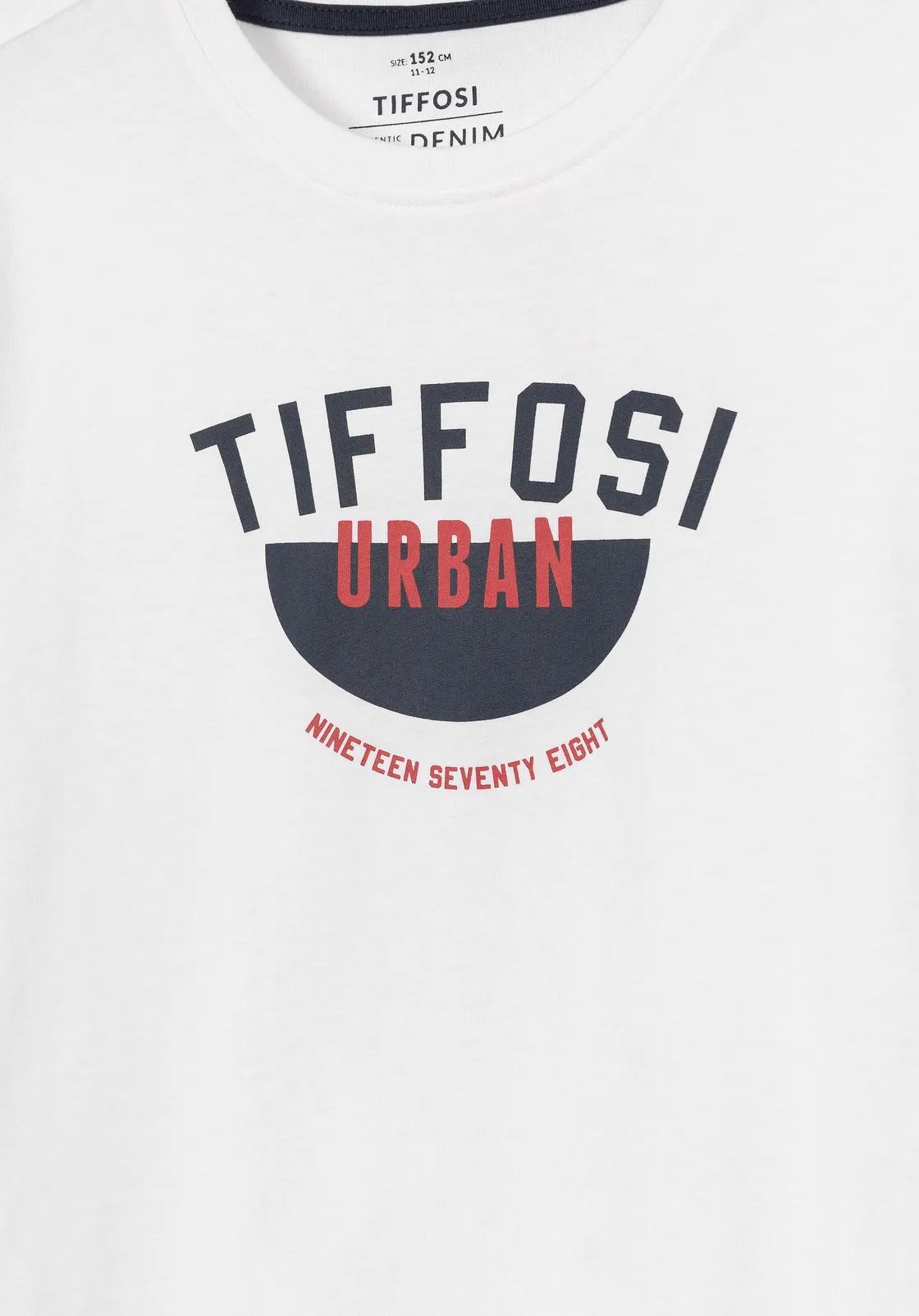 Camiseta con cuello redondo y manga corta. Estampado frontal.