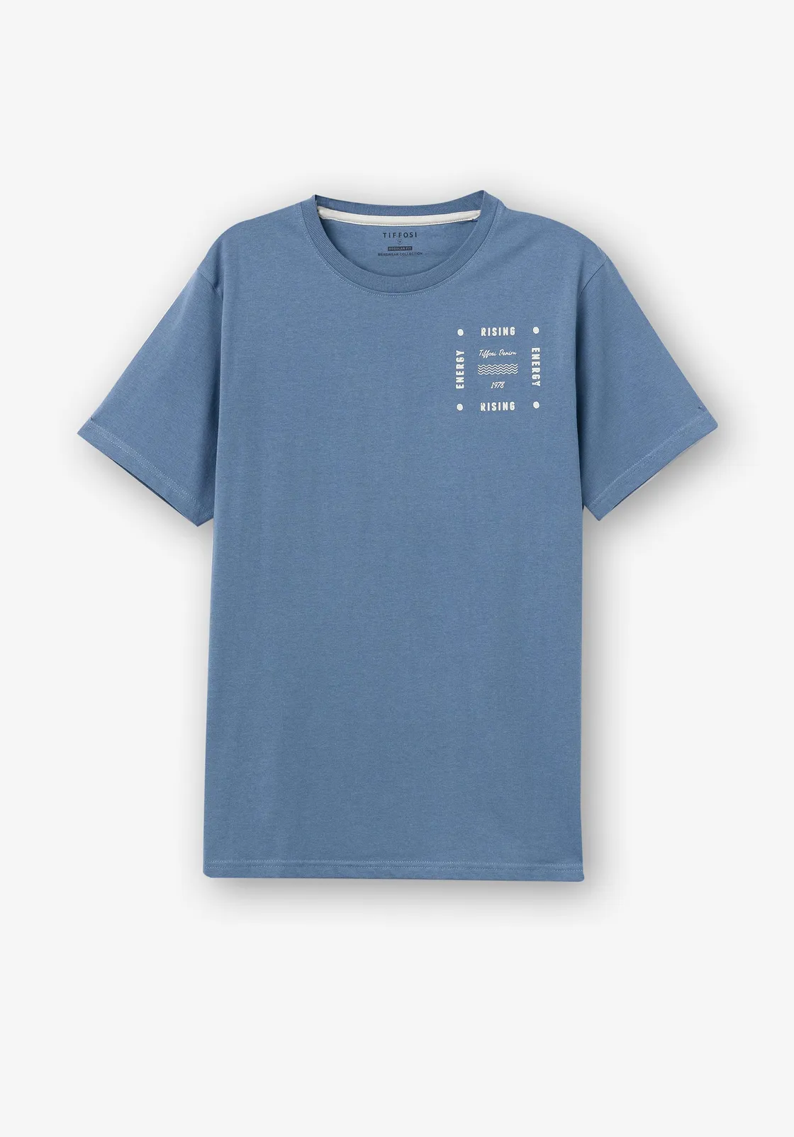Camiseta regular fit de cuello redondo y manga corta. Texto estampado frontal. Cuello en rib.