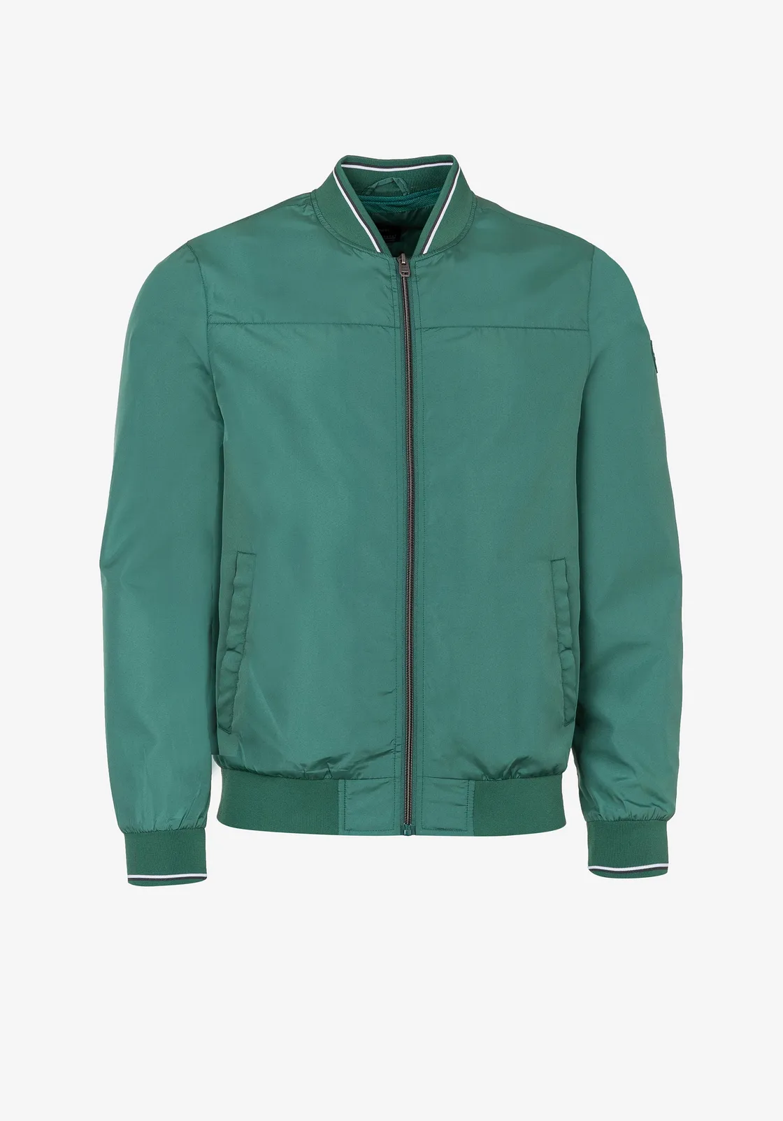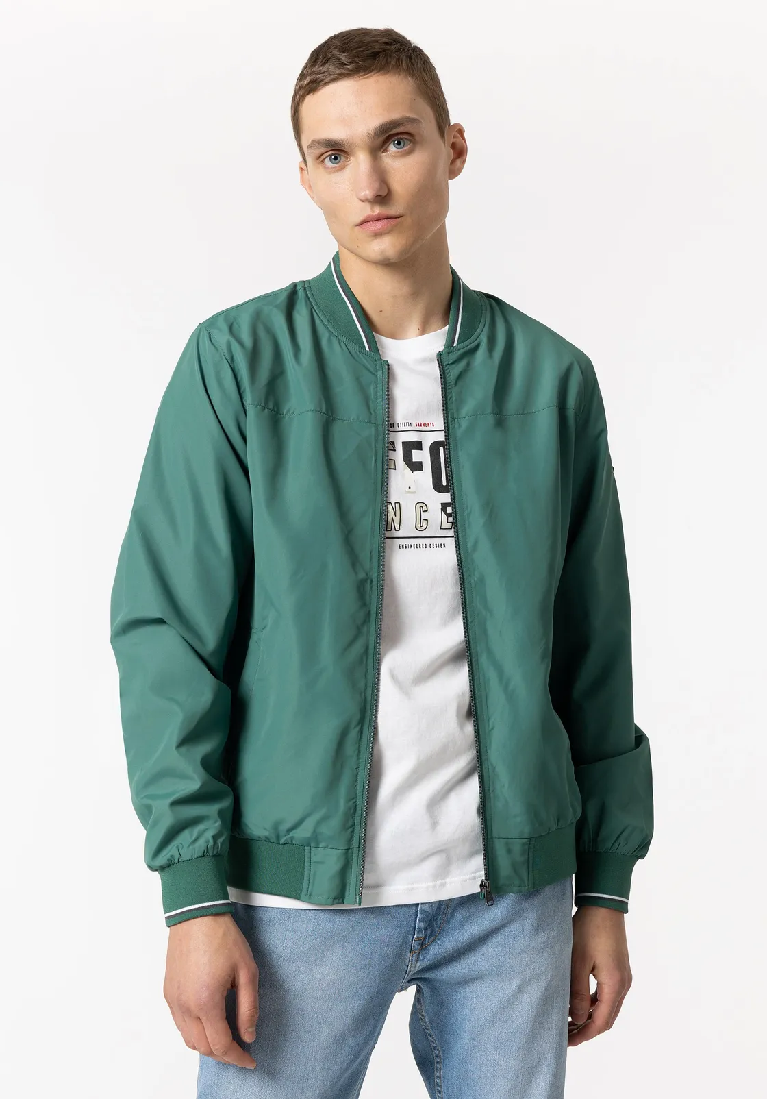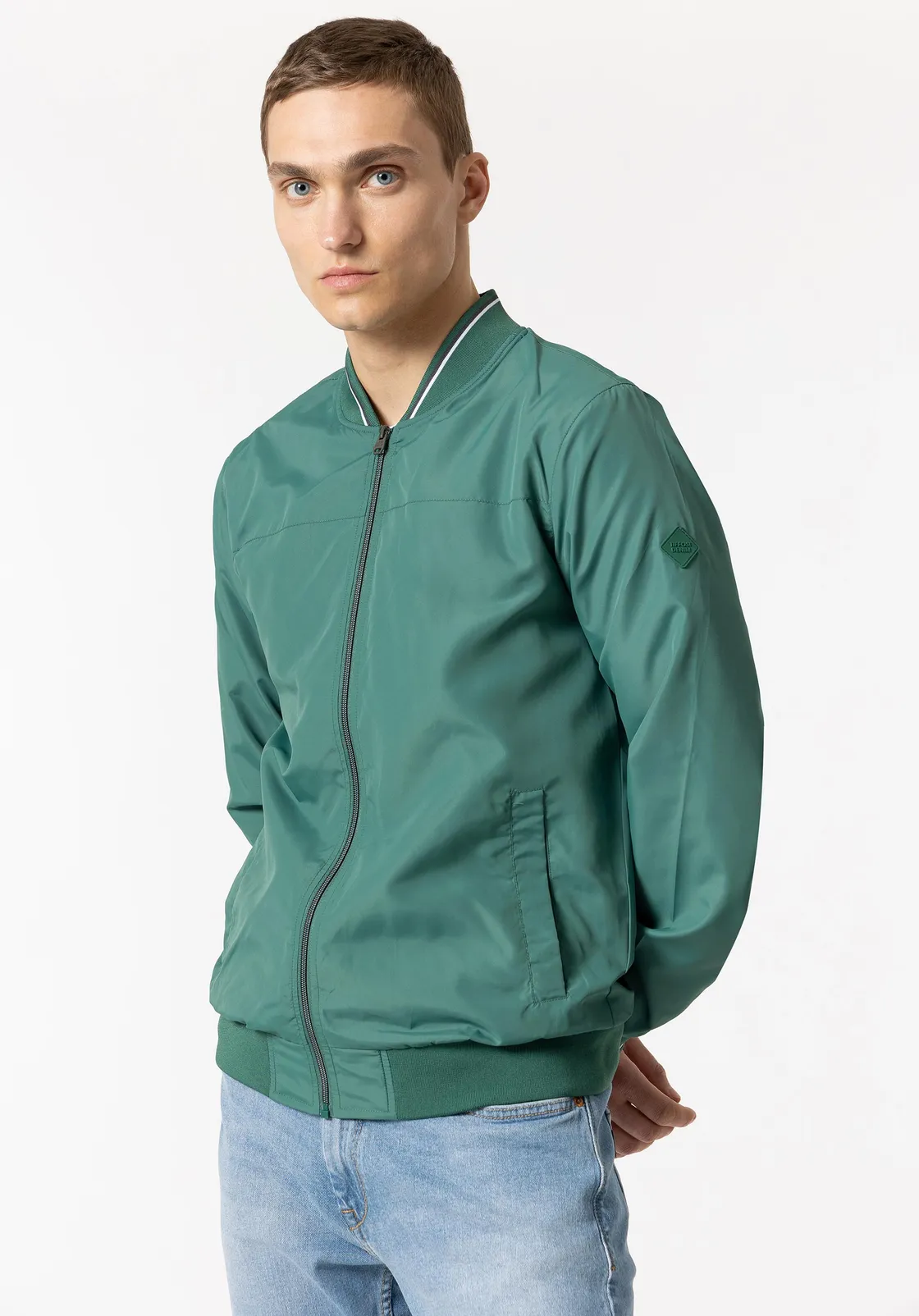 Chaqueta tipo bicolor de manga larga. Cierre frontal con cremallera. Bolsillos laterales y bolsillo interior. Terminaciones de canalé.